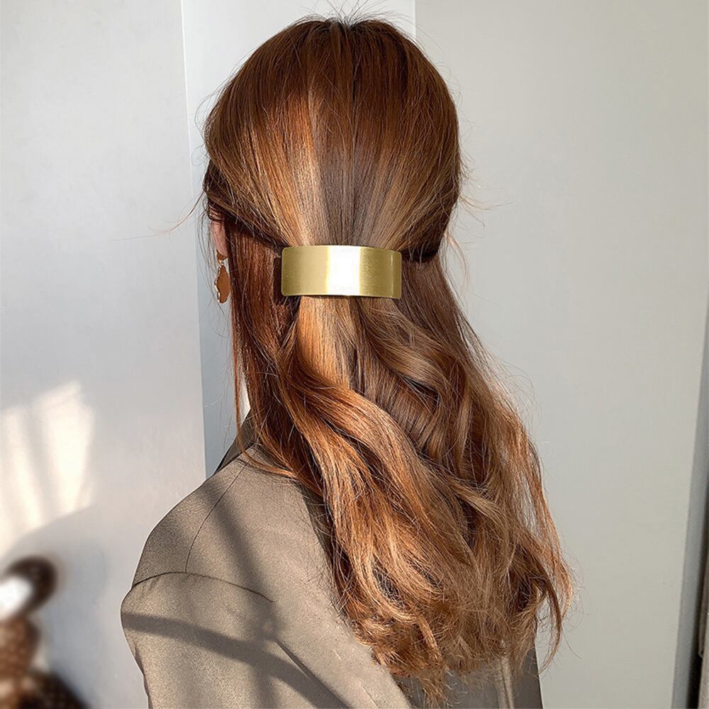 シンプルながらエレガントで女性らしい印象を与える優雅なカーブデザインのメタルバレッタ