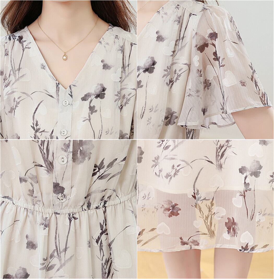 一枚できれいすっきり見え!花柄シフォンワンピース。