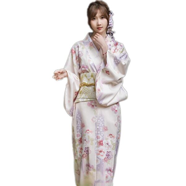 淡いピンク色の花柄が落ち着いた印象 浴衣4点セット(浴衣・白帯・扇子・髪飾り)
