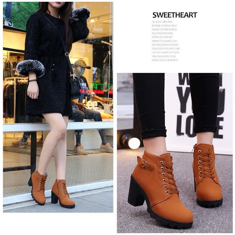 8cmヒールでスタイルアップ間違いなし レースアップブーツ